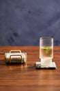 Delphine Set Of 4 White Marble Coasters with Brass Finish Holder