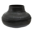 The decorative Black Deomali Vase has a spherical profile which will add an artisanal element to your home. Its etched linear design has been handcrafted onto quality aluminium which may feature slight variations making each piece totally unique. Use to display dried flowers and pampas grass. Group with the large size in Gold on a sideboard or console table, the contrasting tones and heights will create an eye catching display.
