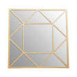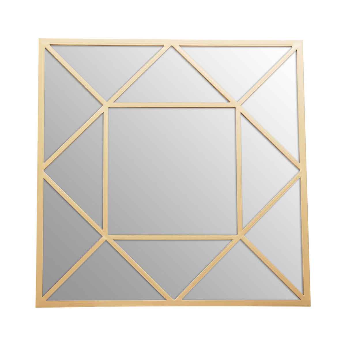 This square-shaped mirror will introduce an industrial trend to a classical or contemporary home. The reflective mirror is accented by a geometric-inspired overlay and encased neatly in a gold finish metal frame.