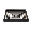 This square shaped serving tray is featuring a striking striped pattern in black and white finish that creates a captivating 3D effect. Both decorative and functional, it serves as a stylish piece for serving refreshments or displaying decor.