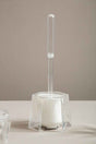 This toiler brush has a long, clear acrylic handle that is durable and provides an ergonomic grip. Its thick, white bristles are robust enough to ensure an efficient cleaning of the bathroom space. It neatly rests inside a matching holder.
