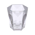 It has a tapered construction with a wider rim at the top and provides an ample storage for toothpaste, toothbrushes and likewise items. A decorative, 3D geometric design at the outer surface gives it a texture.