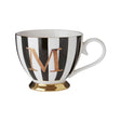 Crafted from new bone china, this teacup has a black and white striped pattern on its outer surface that boasts sophistication. The reflective gold-coated base complements its matching gold letter "M" on the surface, adding a personalised touch to your morning routine or tea time.