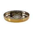 The gold coloured exterior contrasts with the reflective silver inner, where a leaf design travels across its middle area. Pair it with the Elissa gold glass soap dispenser for a coordinated look in the bathroom.