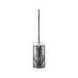 The cylindrical brush holder has a silver finish which makes it opaque, becoming clear at the top as the silver fades away. Its colouring adds emphasis to the symmetrical leaf pattern, its dark grey complementing the metallic silver.