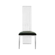 Designed to radiate opulence, the Eliza statement dining chair boasts a tall, grand back that extends from the ground. A supple black faux leather seat adds a dark counterpoint to the cool metallic back and elegant tapered legs.