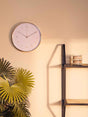 This round wall clock has a gold finish metal case that features a striking contrast with its pastel pink face. The gold hued numbers, batons and needles are accentuated on the pink dial which enhance its readability and visual appeal.