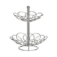 The stand remains stable and secure thanks to the wide round base that supports a slim central plinth. The reflective chrome finish complements the two wire frame tiers, each one boasting a circlet design that enhances its decorative appeal. The wider lower tier is suitable for storing large fruits such as bananas, while the upper tier is ideal for smaller items such as grapes and cherries.