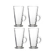 This set of four coordinating latte glasses has rounded handles and tapered feet. Handles at the side ensure that they can be held comfortably, while the thick foot at each base prevents breakage when the glass is set on a table.