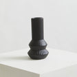 Expertly crafted from superior quality durable ceramic, this contemporary vase features a cylindrical body with expanded sections around the bottom. This round vase exhibits modern elegance thanks to its chic matte black finish and fluted body making it a modish accent piece when used as a standalone decorative accessory. The elongated neck makes it a chic plant pot for floral display.