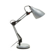 The Finley lamp features a round movable shade connected to an adjustable arm with knuckle joints. Skilfully crafted from robust iron and given a silver finish, this desk lamp is fixed neatly on a sturdy round base