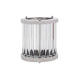 This candle holder has a rounded design featuring a series of fluted glass that refracts light and provides a warm glow. The symmetrical construction of glass is securely held by silver finish stainless steel rings on the top and bottom boasting a luxe aesthetic.