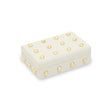 This small trinket box in the cream finish is a classic combination of organic and modern style. Skilfully made from MDF and accentuated with stud detail in the warm metallic finish, this trinket box brings a luxurious touch to side tables and vanities.