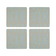 Complete your table setting with the set of 4 Frosted Deco coasters .These pastel green coasters feature art deco inspired metallic patterns and will help protect against scratches and heat while adding a pop of color to your dining decor. Pair them with matching placemats for a cohesive and stylish look.