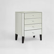 The Gabriella chest has a sleek and stylish mirrored outer with bevelled sides. Renewable pine wood legs are elegantly carved and coloured in black to form a monochromatic contrast with the luxe silver palette.