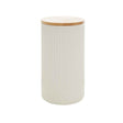 This large canister in cream finish will bring an elemental feel to the kitchen with minimal design and cylindrical shape. Made from robust stoneware, this canister boasts a beehive effect, and the removable bamboo lid will keep its contents fresh and organised.