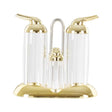Elevate your dining experience with this set which includes salt and pepper containers complemented with oil and vinegar bottles. Each transparent piece has a gold finish decorative lid that matches the base holder with a sleek top handle for easy portability.