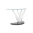 The striking cross shape base of the Halo console table creates a striking look in a modern setting and will add its own function and fashion to your hallway. The stylish base criss crosses for its contemporary look, while the chromed finish accentuates the elegant design.
