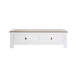 The Hampstead coffee table utilises natural beech wood to create its low profile cabinet. Its clean white finish complements the rectangular tabletop's rich oak tones. Each leg features a small disc at the foot, designed to protect flooring from scratches. Both drawers are adorned with carved metal handles, providing space to stow reading materials and remote controls.