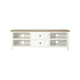 With four open shelves and a pair of drawers, this media unit provides ample storage and display space. Holes at the rear of the natural birch wood cabinet allow AV cables to be routed safely and neatly. The oak wood tabletop provides plenty of room for a television to be displayed, its rich brown colour complementing the cabinet's crisp white finish.
