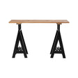 The work bench style tables iron base ensures sturdiness and long lasting use, while the black finish gives it a robust look. The pine wood top features a natural grain giving the table a rustic look as well as being durable for everyday use.