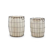 Crafted from matte black wire in a grid design, this set of two rounded storage baskets have a minimal style. Each basket is supported with side handles for easy carrying, complete with a removable cotton liner that is securely attached to the frame.