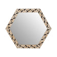 Made from resin, this wall mirror has a hexagonal frame featuring a distinctive geometric pattern in tonal black, ivory and cream. Style with Harlo orbs, tray and bookends for a coordinating look.