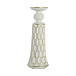 Made from light but hard-wearing polyresin, its white finish makes it perfect for displaying within a neutral colour scheme. Gold lines trace the course of the symmetrical pattern. Complements small white and gold polyresin candle holder.