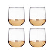 This set of four glass tumblers adds a refined touch to any table. Designed with a smooth curved profile and a luxe metallic gold finish, each tumbler holds up to 390ml, perfect for serving juices, cocktails, or everyday beverages.