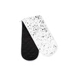 Made from soft cotton, the heat resistant Hygge double oven glove has a black underside that counterpoints the white top. The dark underside is richly textured and has been quilted, creating a modern diamond pattern on the fabric. The upper is a clean white colour, decorated by a contrasting black splatter effect.