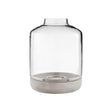 Its removable shade is made from clear glass and has a bottle neck that accentuates its tapering shoulders. The base is made from sustainable mango wood with a small plinth at the centre designed to hold a pillar candle. The subdued tones of this handcrafted accent piece make it suited to cool Nordic interior design settings. *This item is handcrafted so please expect slight variations to the finish*