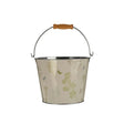 The Jardin 5 liter bucket is made from galvanised steel, with powder paint coating, which helps to prevent rust and ensures robustness. On the outside of the bucket, various flower types and butterflies in soft greens and greys are accentuated on a natural background for a charming look. The securely attached handle with wooden grip for better purchase, makes it easy to carry the bucket when required.