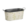 The Jardin Oblong bucket is made from galvanised steel, with powder paint coating, which helps to prevent rust and ensures robustness. On the outside of the bucket, various flower types and butterflies in soft greens and greys are accentuated on a natural background for a charming look. Securely attached handles on the side makes it easy to carry the bucket when required.