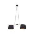 This pendant light has two inverted matte black shades with warm metallic inside that adds a luxe touch in living room. These shades are equally balanced with an iron rod fixed to the adjustable cord.