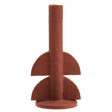 This candle holder boasts a geometric formation with a mix of clean and curved lines. Hand carved from stone, this holder in red finish candle, has a round base that complements the elegant cutout back.