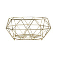 Made from strong iron, this fruit basket's minimalist wireframe construction benefits from a warm gold finish. Its geometric design results in two layers of triangles which combine to form a polygonal bowl shape. The tapered design allows it to hold fruit securely. Small rounded feet raise it from the surface of the table or worktop.