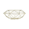 This contemporary fruit basket is formed from a strong iron wire frame. A series of triangles combine to create a geometric diamond shaped bowl, and while minimal wire is used, it is knit tight enough to keep fruit in the bowl. Its gold plated finish creates a warm impression. Coordinate it with the Vertex wine rack.