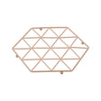 Forming the shape of a hexagon, the strong iron wire frame has a pastel pink plated finish that coordinates well with the Vertex utensil holder. Four small feet keep it slightly raised from surfaces, allowing air to circulate under the hot pot or pan.