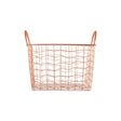 Sleek iron wires intersect each other to form a wavy grid pattern of this open storage basket. Its tapered construction is complemented with round side handles which are neatly integrated at both sides. Stylish and functional, this storage basket boasts a luxe metallic charm and will provide sufficient storage when needed.
