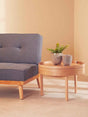 This side table has a revolving top that increases its utility. The table embraces a minimalist aesthetic with a smooth and unadorned natural wood veneer which allows it to blend in any decor.