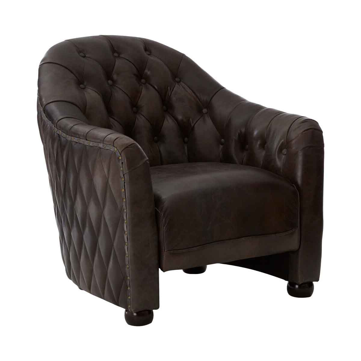 The Victor armchair takes its inspiration from traditional Chesterfield style with its button tufted backrest and quilted back. Its silhouette is accentuated by the line of metallic studs. Low profile feet are carved from solid walnut wood.