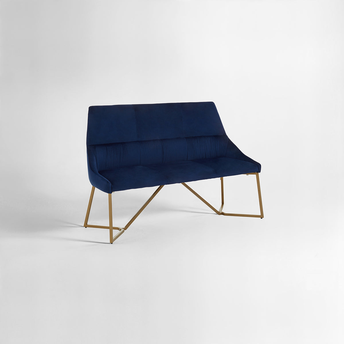 This Vieste bench is upholstered in blue velvet. The soft cushioning seat and backrest of this bench are ideal for a comfortable seating experience. The sleek design of this bench contributes to the minimalistic charm of mid-century modern trend.