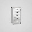 A glamorous storage solution for the bedroom, this chest of drawers is completely covered in mirrored glass. Bevelled edges enhance its aesthetic appeal, and will refract natural and artificial light.