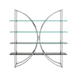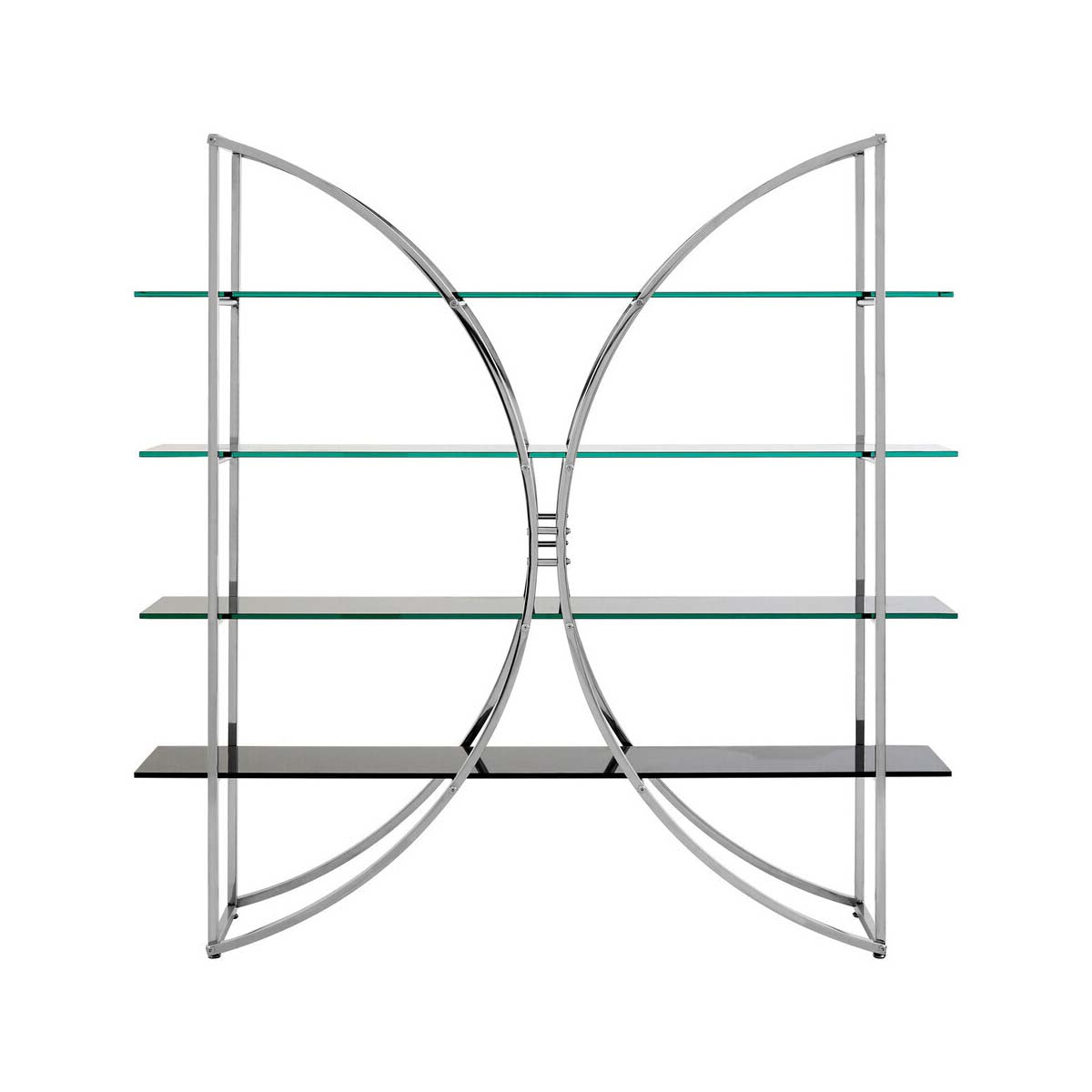 The frame's stainless steel finish complements the four black tempered glass shelves, resulting in a bright statement piece. The robust shelves provide ample display space, running the full length of the frame. The shelf unit's colourings make it suitable for styling in monochromatic interiors.