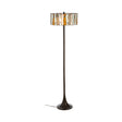 Expertly handcrafted with Tiffany-style art glass, this floor lamp features a drum shade in neutral, cream and amber tones. Colourful jewels further adorn the abstract pattern on the shade which is paired with the rustic bronze finish simplified base.