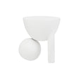 Crafted from mango wood in a whitewash finish, this side table has a round top supported by a sculptural base with a sphere and semi-cupped legs. The harmonious design creates a balanced aesthetic, blending functionality with artistic appeal.
