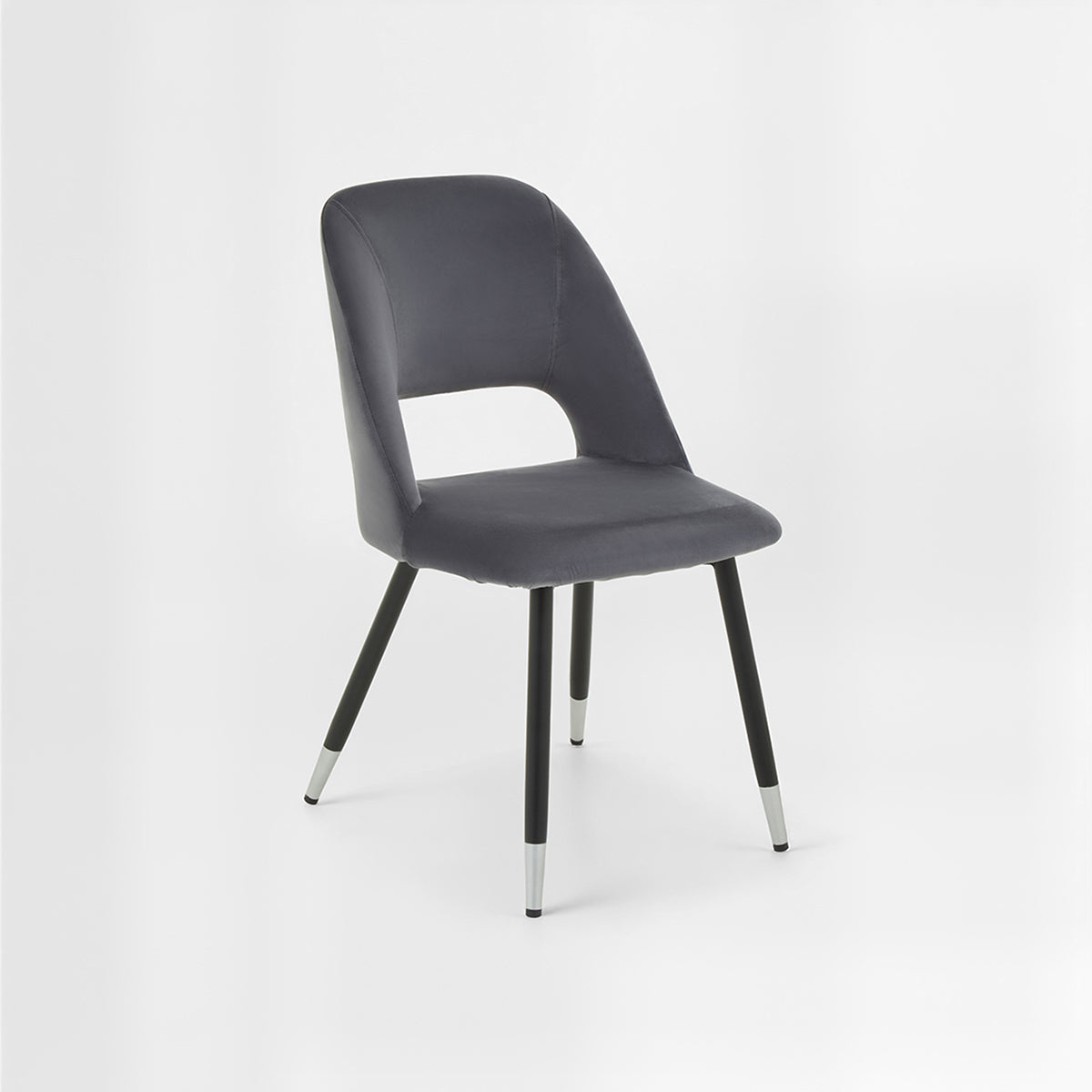 This dining chair is upholstered in grey velvet that works wonderfully in a variety of spaces. Exhibiting a tapered back with cut-out design, the foam-padded seat is supported by tapered legs with silver finish tips adding a chic accent to the living area.