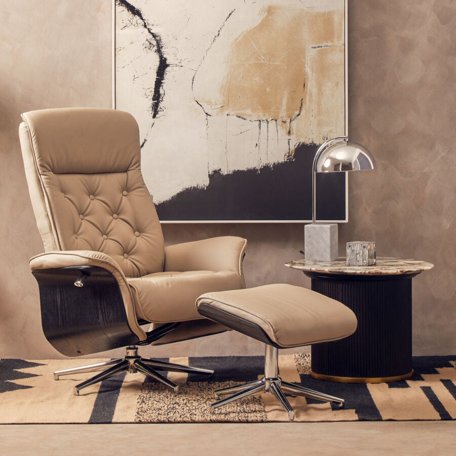 Elevate your office space with the Warrington recliner and footstool. The mink recliner and footstool help to create a more modern look within your home office, all whilst being as comfy as possible thanks to the option to recline and put your feet up.