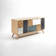 This Scandinavian-style drawer chest is a midcentury modern storage option for your bedroom, offering ample storage space thanks to its two grey front cabinets and six drawers with white and natural fronts featuring cut-out handles for easy access to the contents inside. The frame of the table is given a natural finish that coordinates well with the slanted wooden legs that offer support and a touch of style to it.