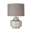 Resting on a circular plinth, the base of the Waverly table lamp is made from durable grey ceramic. The geometric pattern on its base gives the lamp a contemporary look. The base is paired with a grey fabric shade, which complements its ceramic base.